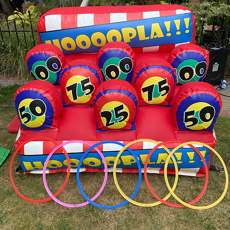 Hoopla game great fun for all. Throw the hoops over to score. Great add on to any castle hire.